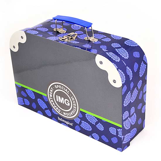 This purple-blue box features scattered footprints over the box. Imitating a real iron case, there are two locks at the upper corner on the box cover. The single-handle box is perfect for children to carry books to tutorial centers.