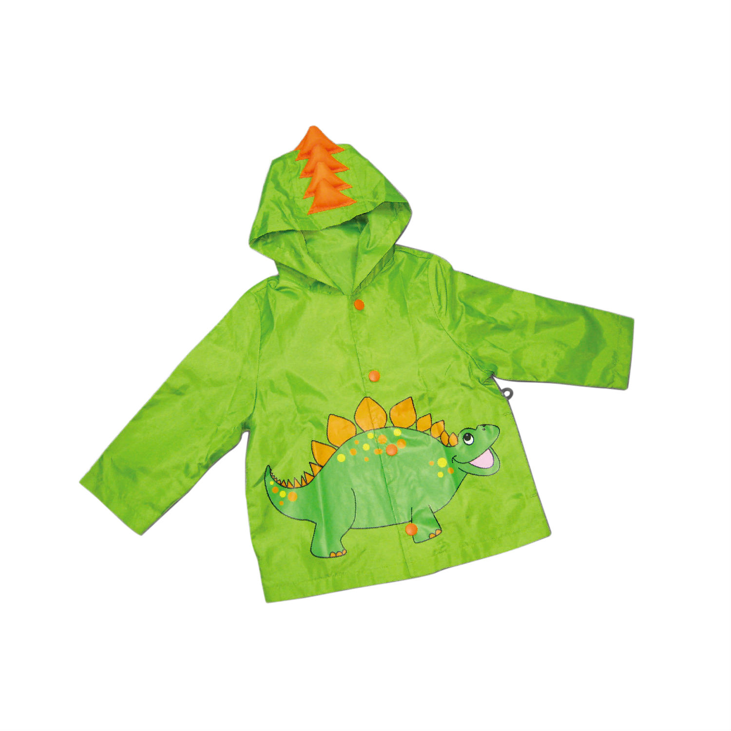 Featuring a cartoon dinosaur print, this adorable raincoat with overwhelming cuteness catches your immediate attention for sure. It comes with a drawstring hood to reinforce water protection around head and neck area, while its snap button design allows kids to do up the buttons by themselves.