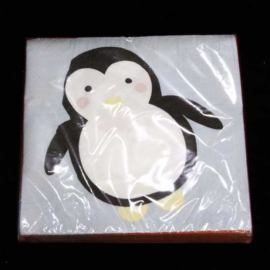 Shown here is a pack of cartoon napkin paper adorned with a cartoon penguin, producing a perfect aura of humor and friendliness. The good-quality paper offers a soft and comfortable texture. This decorative cartoon napkin paper greatly enhances a dining table.