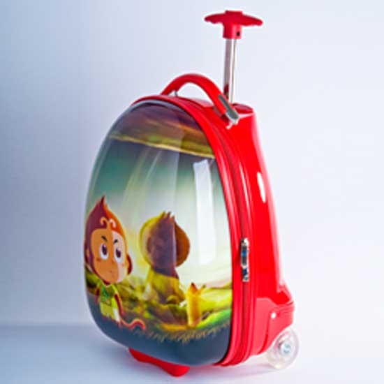 This cartoon-print schoolbag is made of top-quality ABS material for shockproof, heat resistance and other features. The extra-large compartment with straps allows easy storage. The adjustable handle and 2 wheels help add ease in carriage.