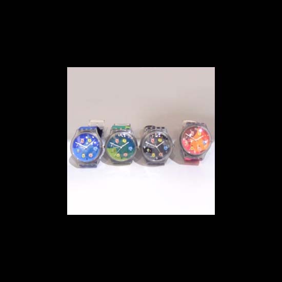 There are 4 colors available for the cartoon watches, including red, blue, green and black.