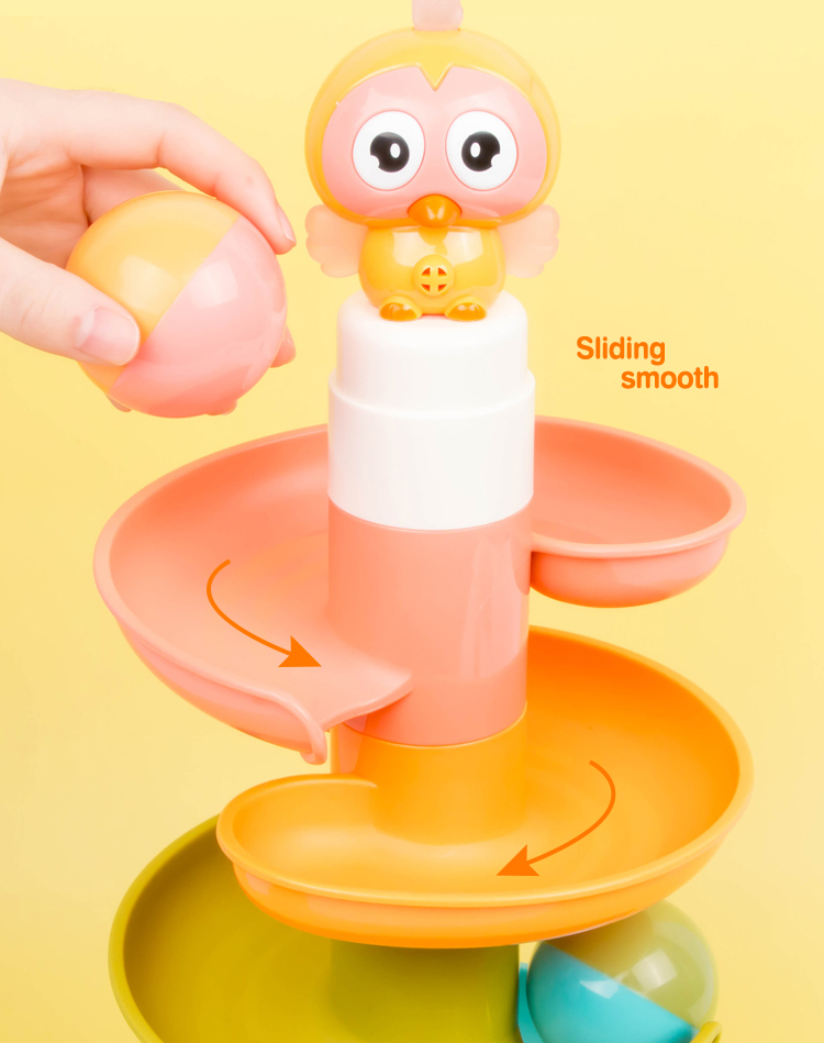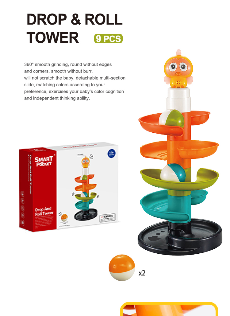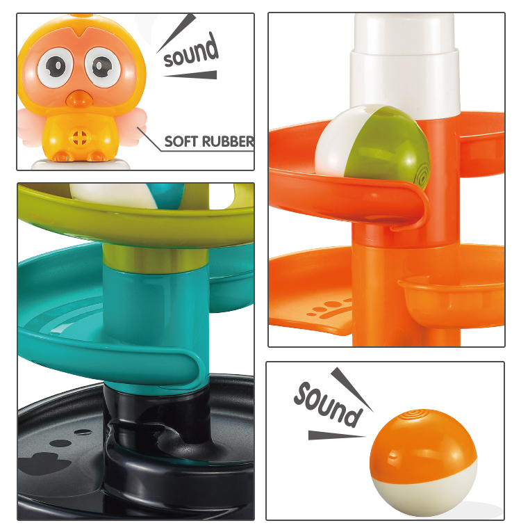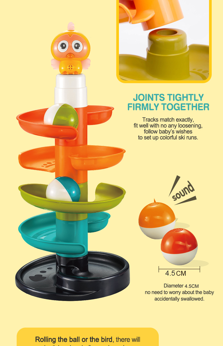 【Feature】: Each ball contained beads, the balls making crisp rattling sounds when they wind and roll down the tower ramps.