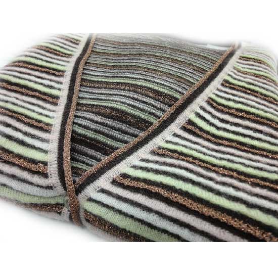 Shown here is a ladies' cardigan designed with thin stripes of assorted colors. A V-neckline and a button-up front look modest and sophisticated. Top-quality cashmere material guarantees wearer's warmth and comfort.