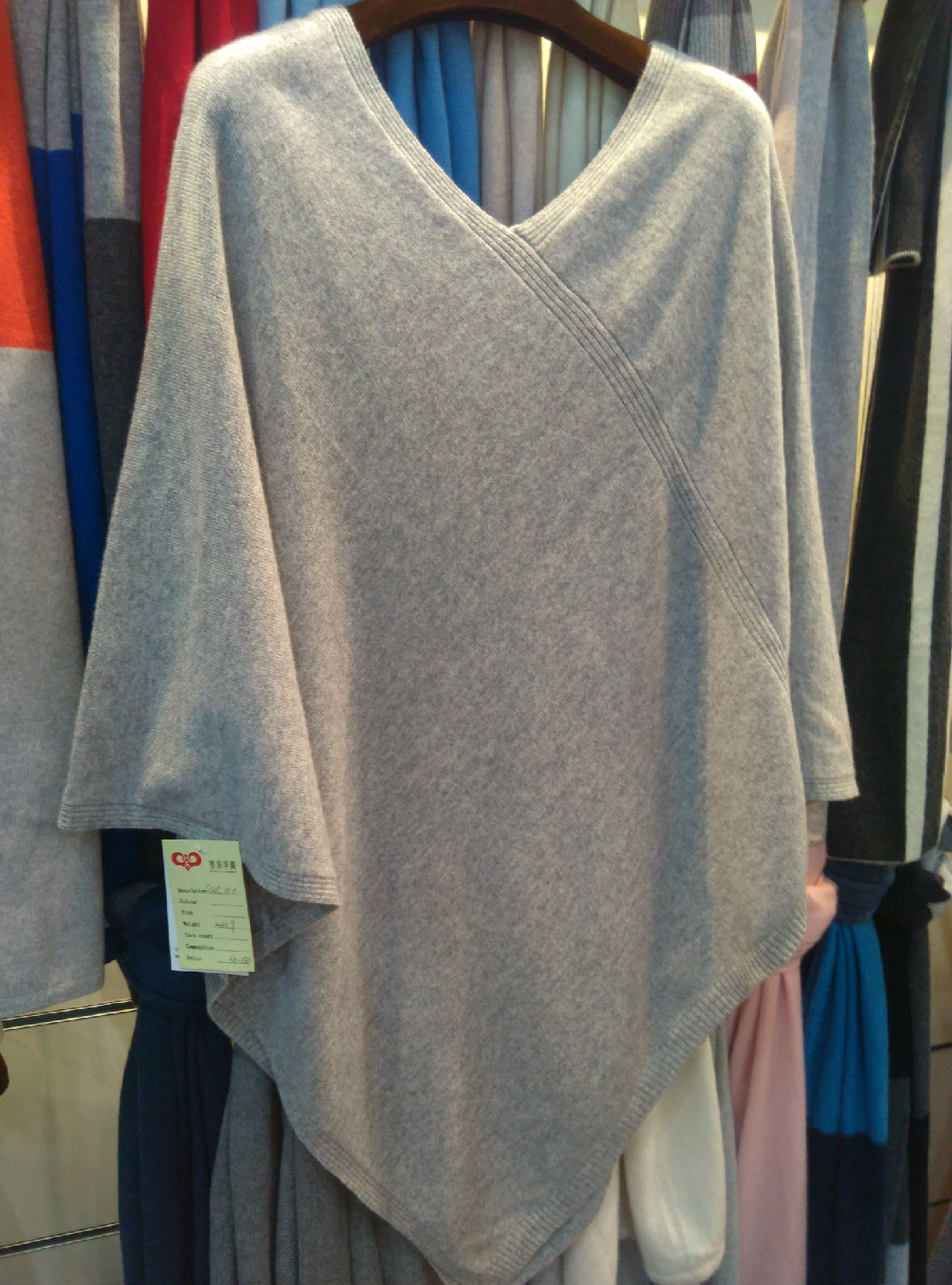 100% cashmere V-neck poncho 240g