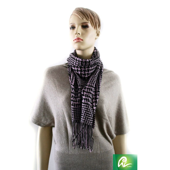 This featured scarf comes with ever-popular houndstooth pattern in pink and black. This fashionable scarf is well composed with pure cashmere for a silky touch on the skin. This elegant scarf keeps you warm in the winter days.