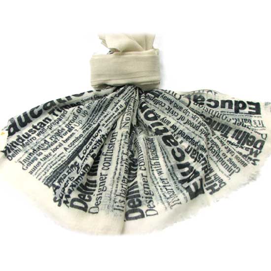 This is a classic scarf that is made of 90% cashmere and 10% silk. The allover wording prints in black add a unique sense to this scarf. This fashionable scarf is surely an ideal accessory to complete your wardrobe.