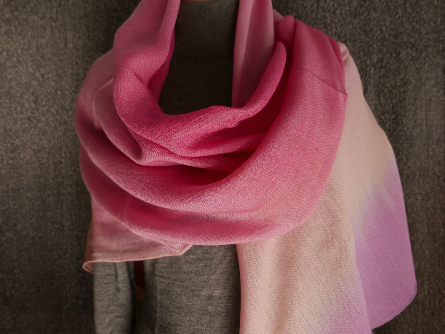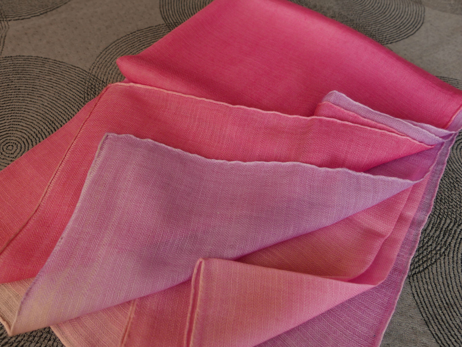 Cashmere/silk square shawl: Cashmere silk intersection weave, ombre dyed