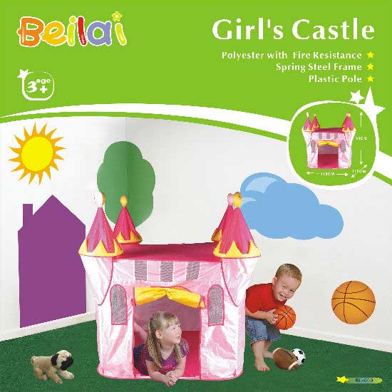 This castle tent is made of high-quality polyester material that ensures excellent fire resistance ability. The spring steel frame ensures a durable structure. The cute castle appearance in bright colors will surely grab kids’ attention instantly.