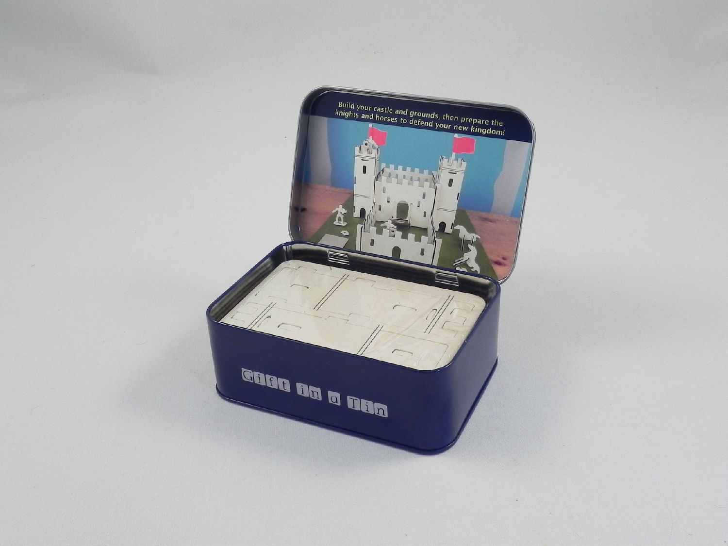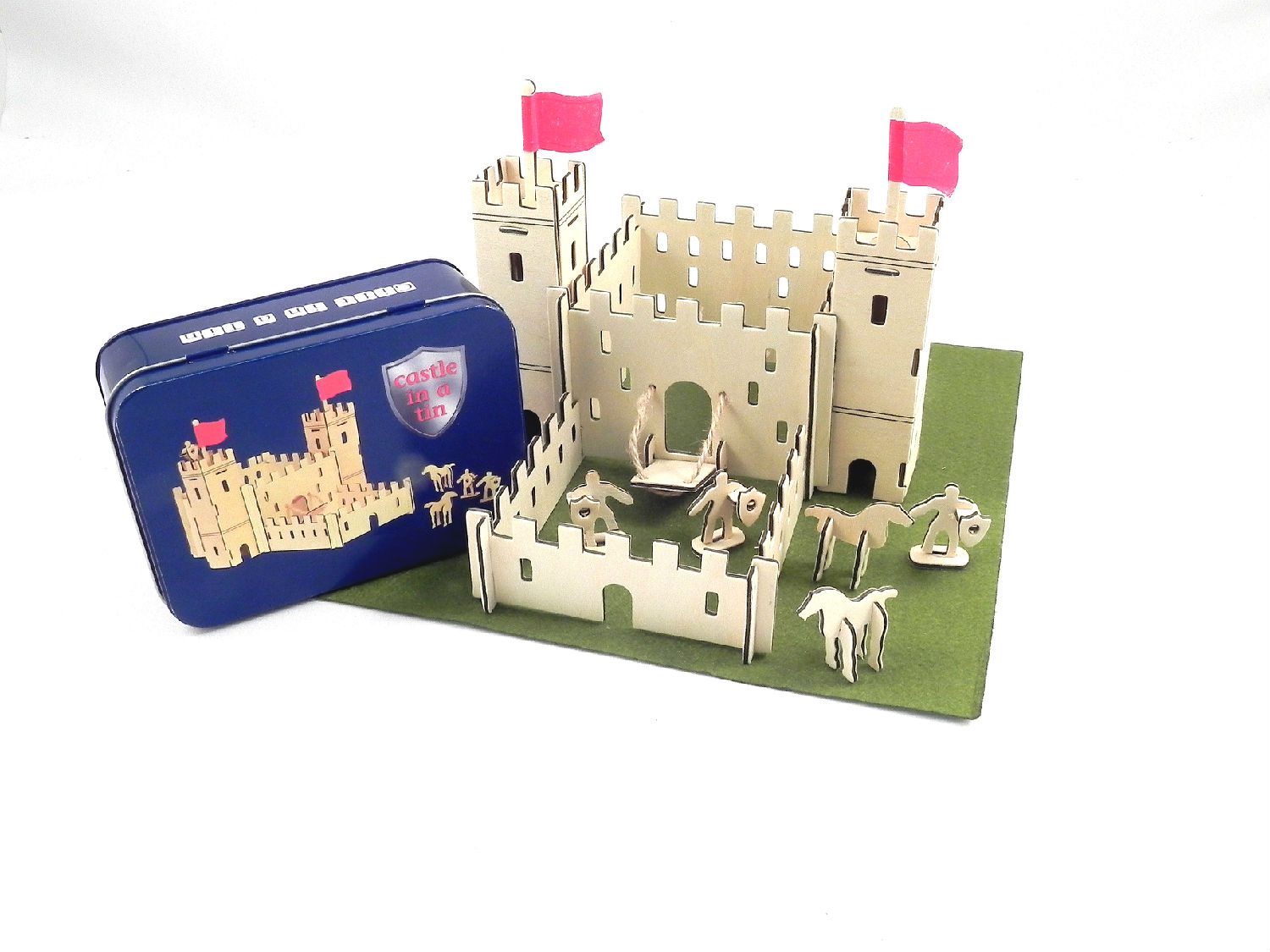 A new addition to Apples to Pears’ award-winning Gifts in a Tin range, the Castle in a Tin was shortlisted for the 2015 Gift of the Year award in the Kids category. Presented in an attractive gift tin making it an ideal party present or postable present, youngsters can play “King of the Castle” with this wooden model kit that includes towers, flags, moveable drawbridge, knights, horses, play mat, stickers and instructions.