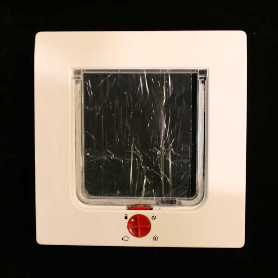 Featured here is a cat flap to be set on the door. It allows free entrance of cats without the need to open the door. The flap can be locked on either side by controlling the switch.
