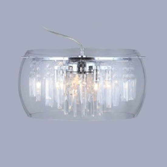 This ceiling lamp flaunts a modernist touch with the transparent shade. The drum shape design is both modest and unique. Get the lamp for your home to showcase your character.
