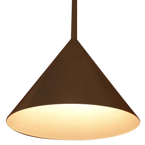 Photographed here is a ceiling lamp with a cone-shaped lampshade. The special lampshade is made of aluminum and alloy for added durability. It is suitable for households and restaurants.