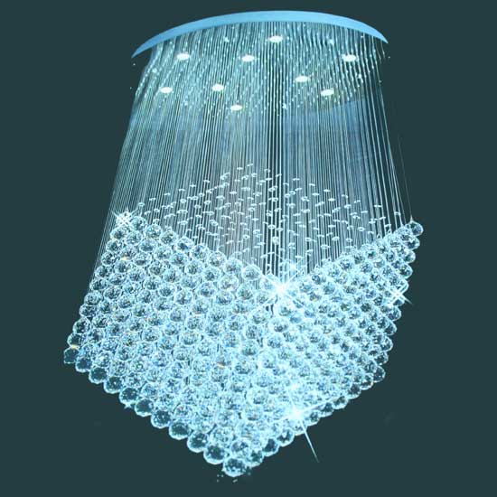This dramatic ceiling light comes with a round plate set with 9 bulbs. The reversed roof-shaped arrangement of beads gives endless sparkling. The stunning ceiling light is an eye-catching piece for any indoor décor.