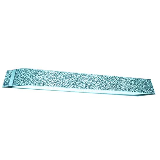 Lighten up the dining room with this sleek and long rectangular-shaped lamp. The pendant lamp is constructed with a solid glass shade and steel holder. Doodle patterns on the shade add a fun touch to this modern lighting fixture.