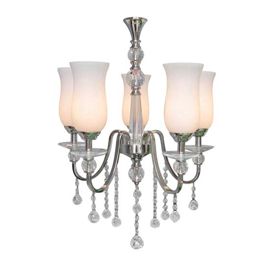 The ceiling-mount chandelier is embellished with glittering crystals for added glamor. The chrome finishing ensures long-lasting beauty. Add a dash of style to your home decor with this ceiling-mount chandelier.