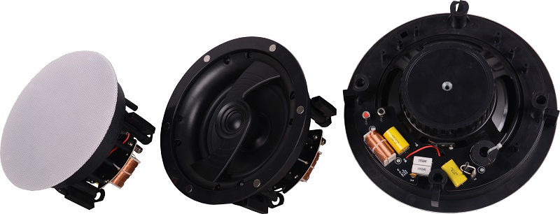 Description This speaker has the most modern and easy fitting method ,a quick fastening clasp. it sets new standards in security and easiness .Four screws to mount or dismount and lifting off the grille(with a screwdriver) is all that is necessary. The installation frame is made of high-quality plastic ,the grille of coated steel. The construction is burgle proof and impact resistant. 1,coaxial speaker,provide wide frequency respone range.high quality music speech playback. 2,Grille can be taken off easily,we use magenet to combine grille and outer casing. Specifications Woofer 8-inches coaxial Tweeter 1-inch Silk Dome Frequency Respone(Hz) 50-20K SPL(dB@1W/M) 90 Power(W) 50 Input Method 8-Ohms of your amplifier Install Diameter(mm) 240 Total Diameter(mm) 284 Install Depth(mm) 93.5