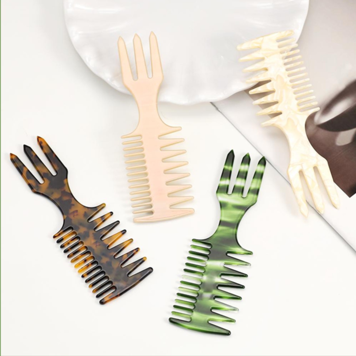Acetate combs offer several advantages due to their natural extracts, tortoiseshell-like texture, and high stability. They are less prone to static electricity, reduce friction, and are gentle on the scalp and hair.