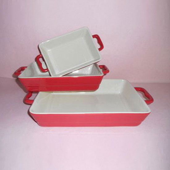 These baking trays are made with ceramic for high-quality performance. They conduct heat evenly to your baking cake or bread. The heat-insulated handles ensure safety for users.