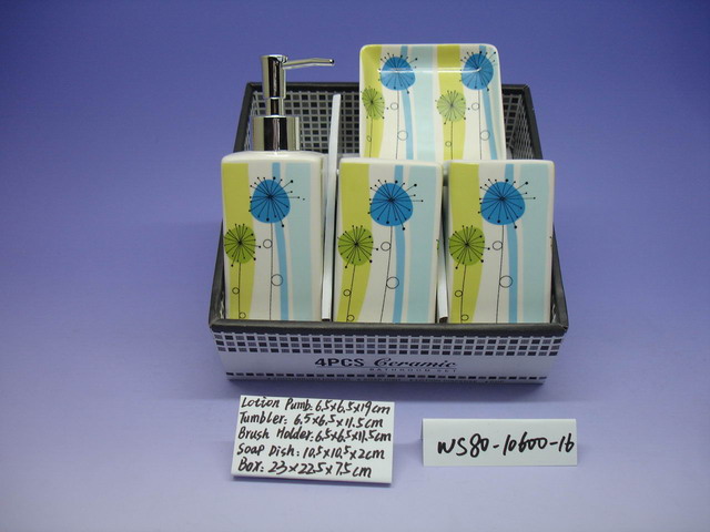 - Dolomite quadrangle bathroom set, include lotion pump, tumbler, brush holder, soap dish.