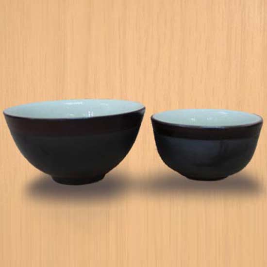 This ceramic bowl set comes with two bowls in different sizes with deep bodies. Each bowl features a dark tone on the exterior. The interior is applied with glossy paint, resulting in an eye-catching design. The ceramic bowls add a natural touch to a table.