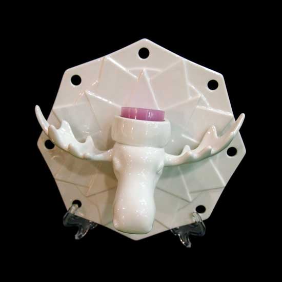 This wall-mounted candle holder features a moose decoration on the surface. The ceramic candle holder comes with an elegant white exterior. This well-designed decoration brings a unique touch to your tasteful room decor.