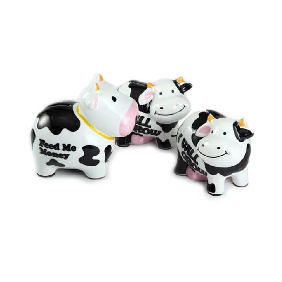This ceramic coin bank features a lovely cow design. These exquisite coin banks are accented with a vivid paint finish. These cow ceramic banks are perfect decorations for your home.