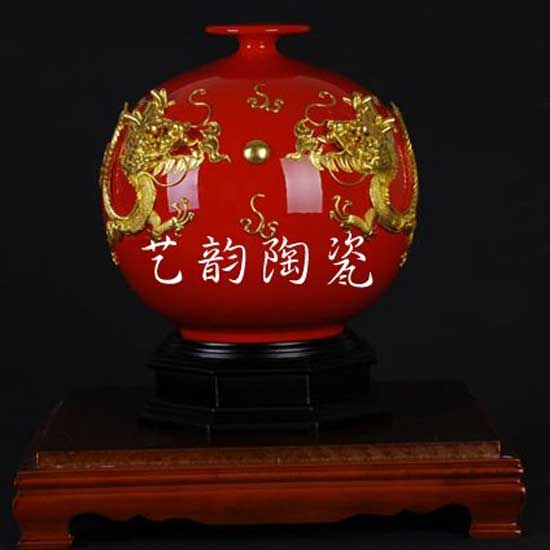 Featured is a beautiful ceramic decorative container that has a traditional Chinese design. This unique ceramic decoration is adorned with a golden dragon-style decoration on the surface. Simply add this to your home for a touch of uniqueness.