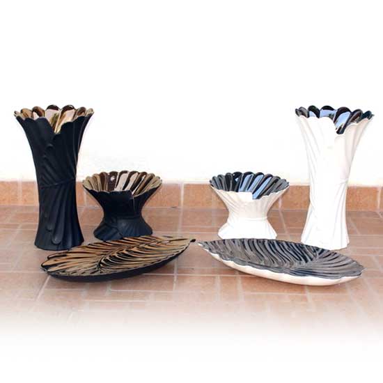 This is a series of ceramic decorations that comes with three artistic pieces. Each piece is crafted with a pleated interior which looks like a butter fruit leaf. Add an elegant sense to your home décor with this beautiful collection.