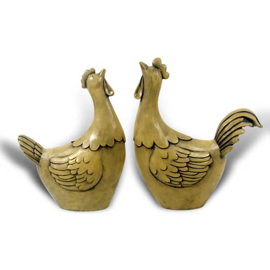 Featured here is a ceramic decoration set which comes with two exquisitely sculptured chicken facing upward. They offer an unusual pleasant touch. The lines give additional aesthetic value to the chickens.
