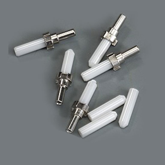 Pictured is a series of ceramic ferrules that is applicable to SC/ST/FC/LC/MU/E2000/DIN/SMA/D4/LX.5 connectors. The use of zirconia raw material ensures good reliability with high precision for concentricity, ID and OD. These ceramic ferrules are well made with exquisite craftsmanship.