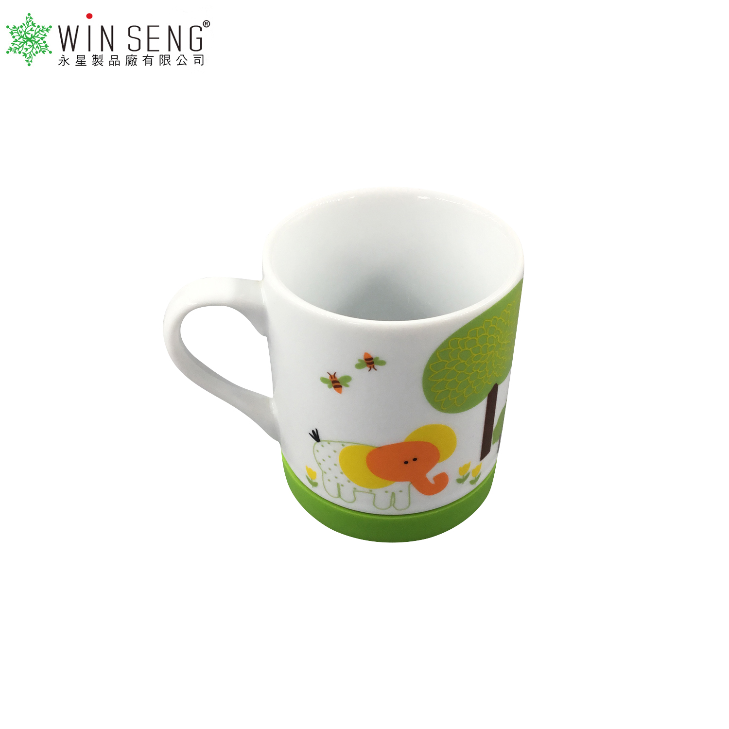 Ceramic Mug For Tea And Coffee, Non-slip cup bottom, White and green