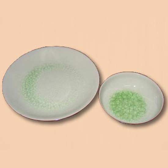 This ceramic plate set comes with two plates in different sizes and designs. They feature glossed surfaces, showcasing an eye-catching design. The mild green color at the center offers a graceful touch.