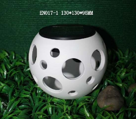 - Ceramic solar light provides a charming garden accent.