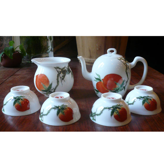 This teaware set is well hand-painted with classic floral patterns for a delicate touch. A teapot, a waste tea container and 4 cups are included in this teaware set. Elegantly designed, this ceramic teaware set has received well compliments from the clients.