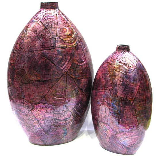 This ceramic vase is carefully designed and made into the Oriental appearance. The layer of mother of pearl pieces is delicately detailed. This item is functional and decorative.