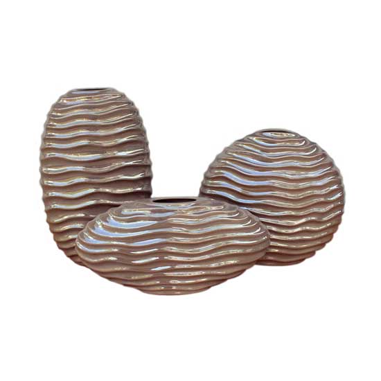 The frill desert family includes 3 vases in assorted shapes. Each piece features a pleated exterior in dark brown with a highly glossy finish. This collection is made of high-quality ceramic.