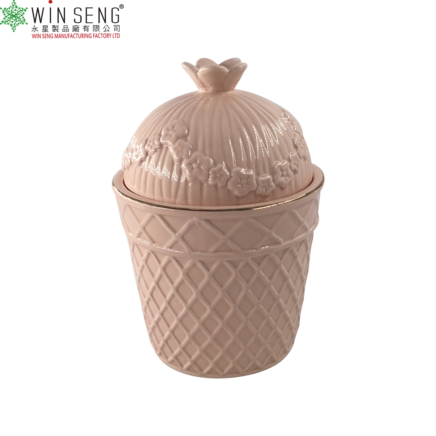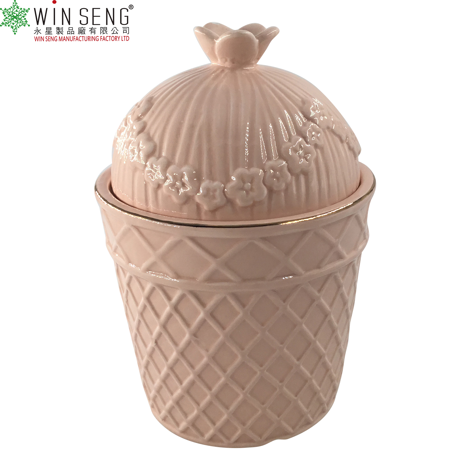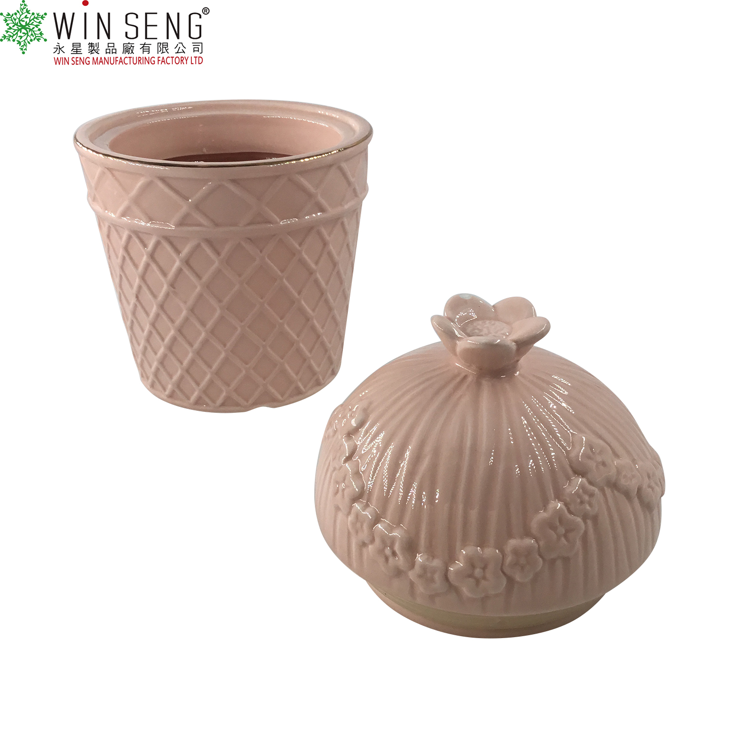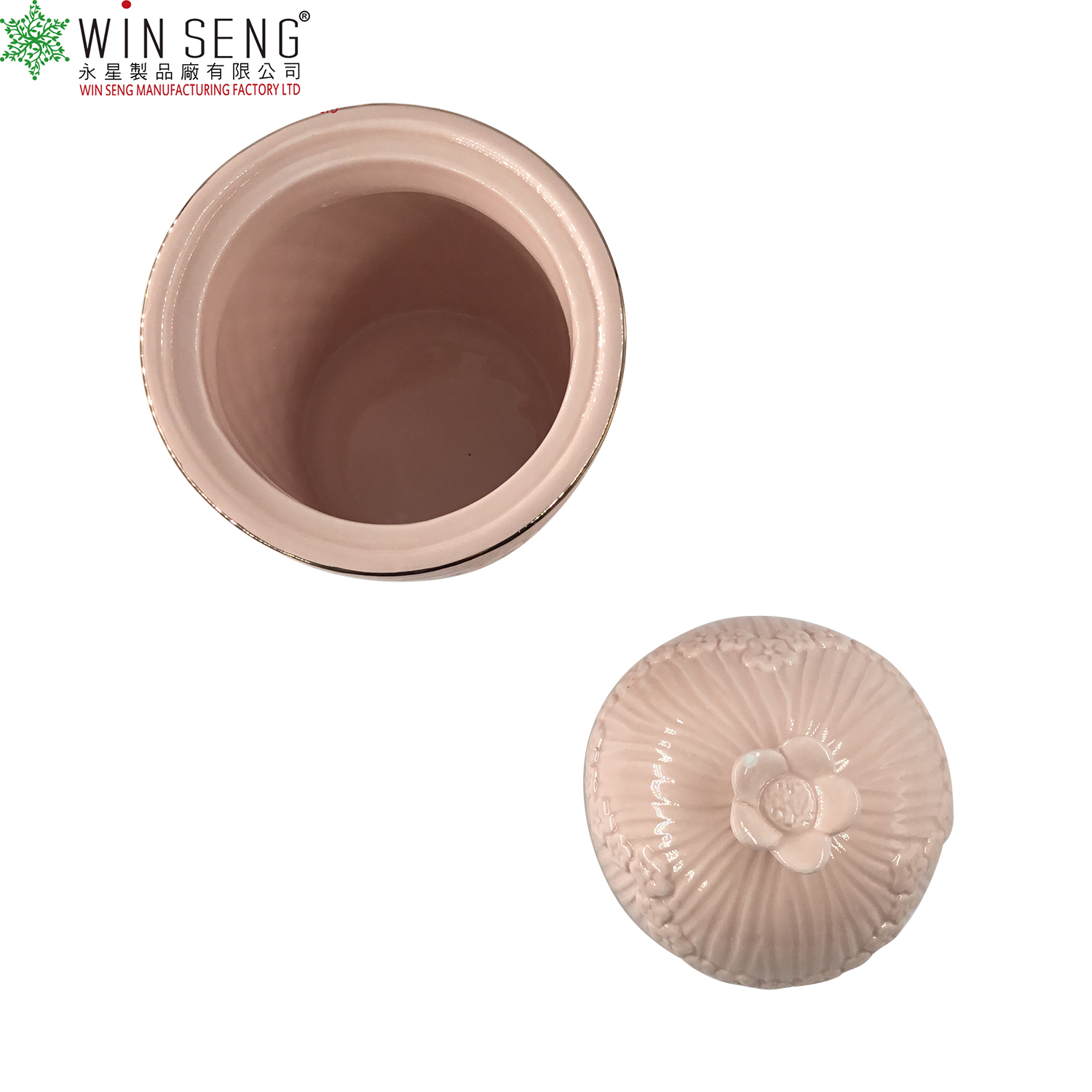 • Item Name: Ceramics stereoscopic pink flower lattice jar