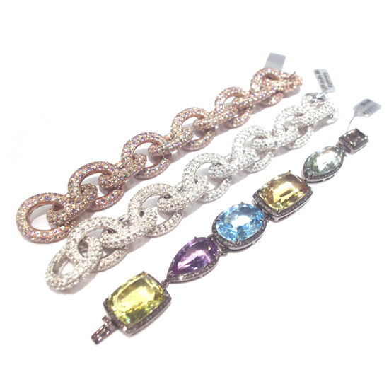 This is a chain bracelet that comes with an elegant and charming appearance. It is accented with colorful gemstones or shimmering black diamonds. This chain bracelet shimmers with a high-gloss finish.