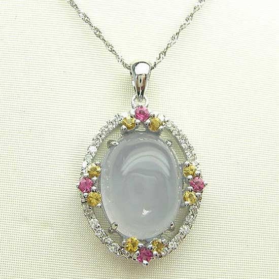 This gorgeous chalcedony pendant comes in a graceful oval shape, adorned with shimmering crystal-like rhinestones for a touch of sparkle. The genuine chalcedony stone has a soft, lustrous sheen, showcasing its natural beauty with long-lasting elegance. Complement your evening outfit with this feminine chalcedony pendant.