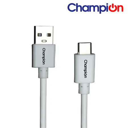 The Champion USB A to Type-C cable delivers a steady 3Amp charging output and high-speed data sync for all Android and USB Type-C devices. Its durable PVC build ensures long-lasting performance and tangle-free use.