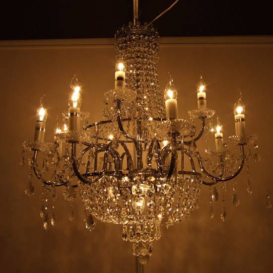 Featured here is a chandelier lightened by 10 bulbs. The frame comes with high gloss finishing. The lamp is designed for grand venues like banquet halls and hotels.