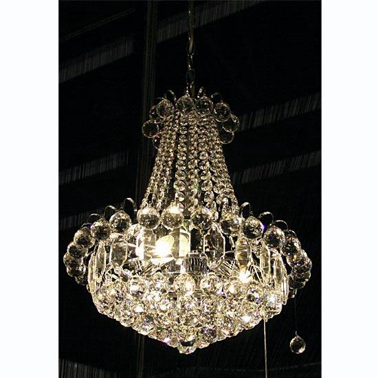This chandelier rejuvenates small spaces by providing sparkling lighting accentuated by warm hues and opulent details. It features waterdrop-like crystal accents in different sizes. It is perfect for any setting regardless of the conditions.