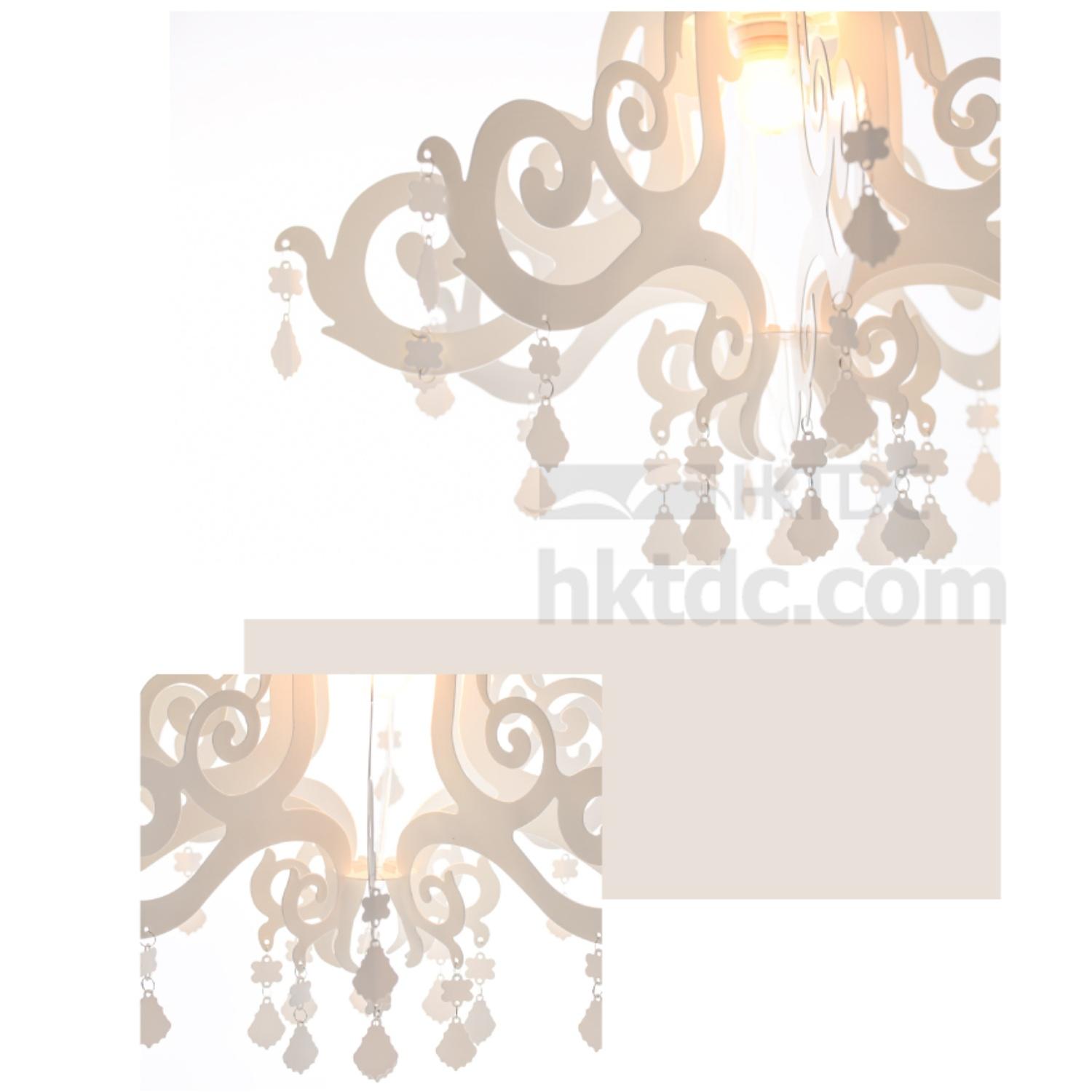 Displayed is an exquisite pendant lamp adorned with beautiful curves. The quality plastic construction gives a lightweight yet durable construction. With a unique design, this pendant lamp will make a bold statement to one's home decor.