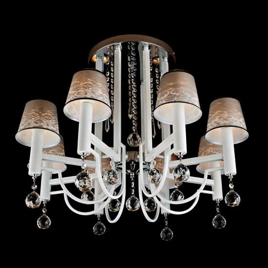 This glorious chandelier comes with separated lampshades with intriguing patterns. The faceted draping beads add a luxurious touch to the look. This unique chandelier is a great addition to your ceiling.