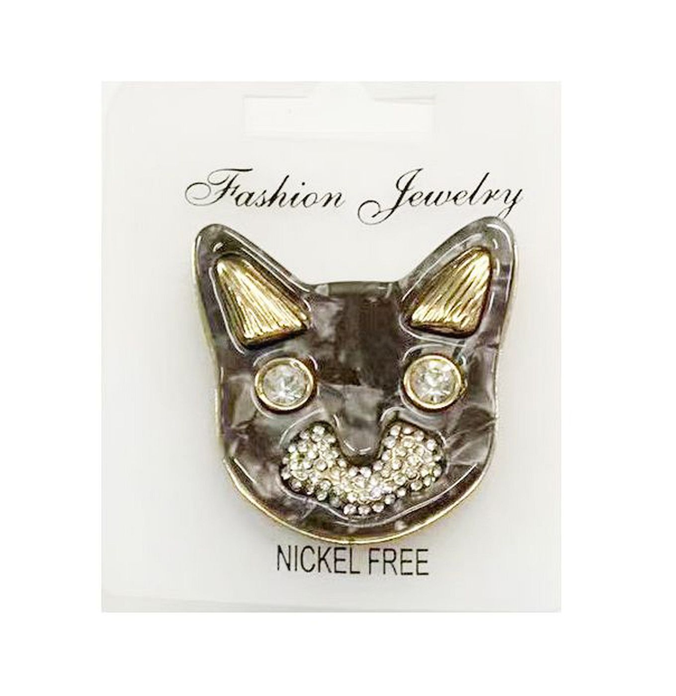 As shown is a high-fashion cat style charm crystal plastic parts brooch.