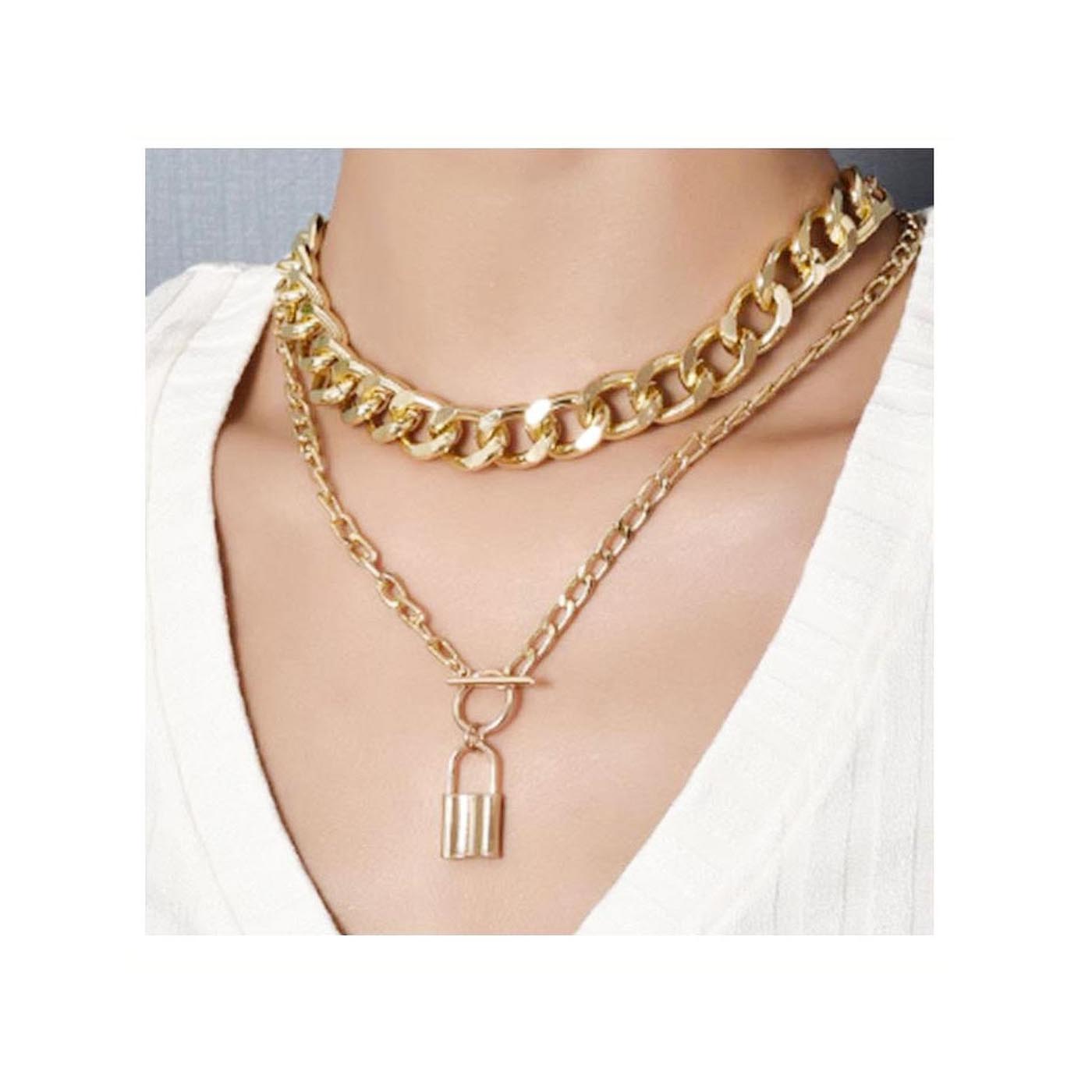 As shown is an elegant trendy necklace each highlighted by charm lock pendant.