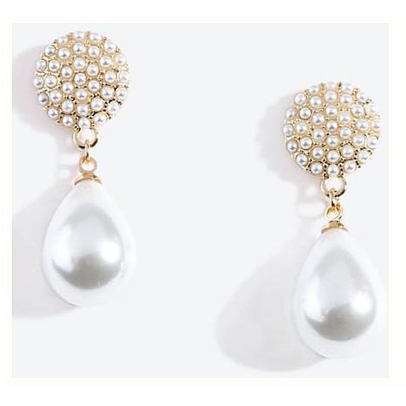 As shown is a high-fashion golden plated and plastic beads charm drop earring.