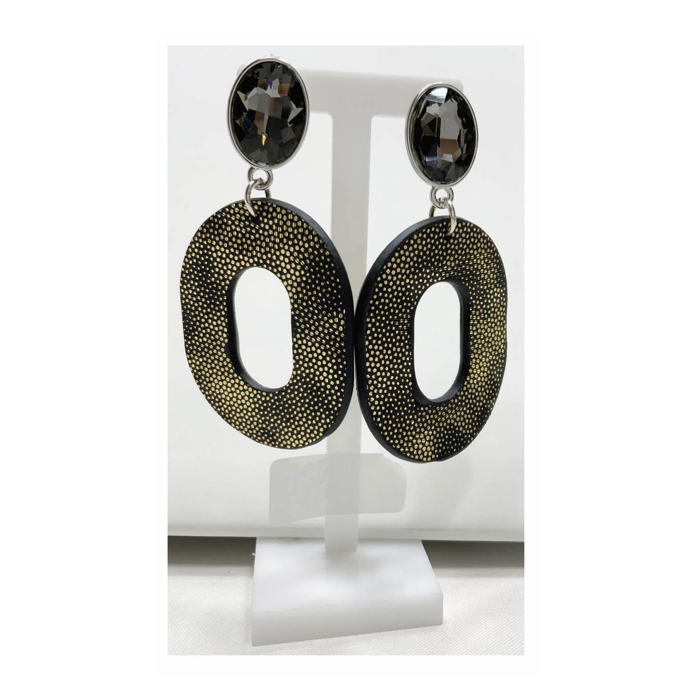 As shown is a high-fashion silver plated plastic parts and charm drop earring.