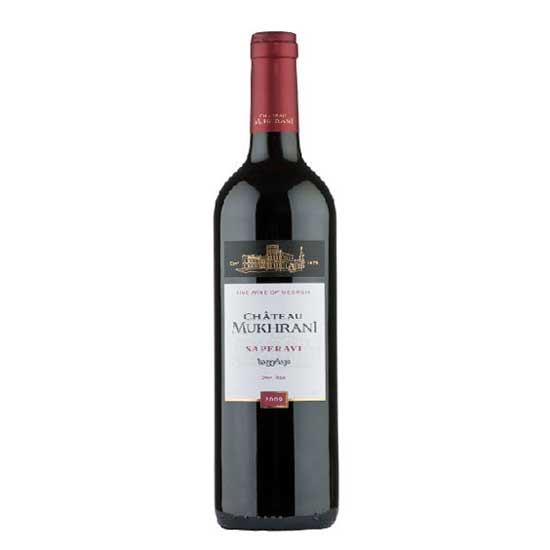 This Saperavi in an opulent ruby color is a dry red wine from Chateau Mukhrani. It gives bouquets of black mulberries, blackberries and cherries.