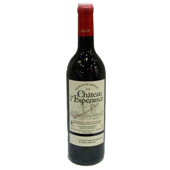 The Chateau l'Esperance Premieres Cotes de Blaye 2008 charms you with its fruity expression of Cabernet Sauvignon and Merlot. The grapes are hand-harvested and hand-selected to ensure the finest quality. The wine is great as a conversation wine to enjoy with family and friends.